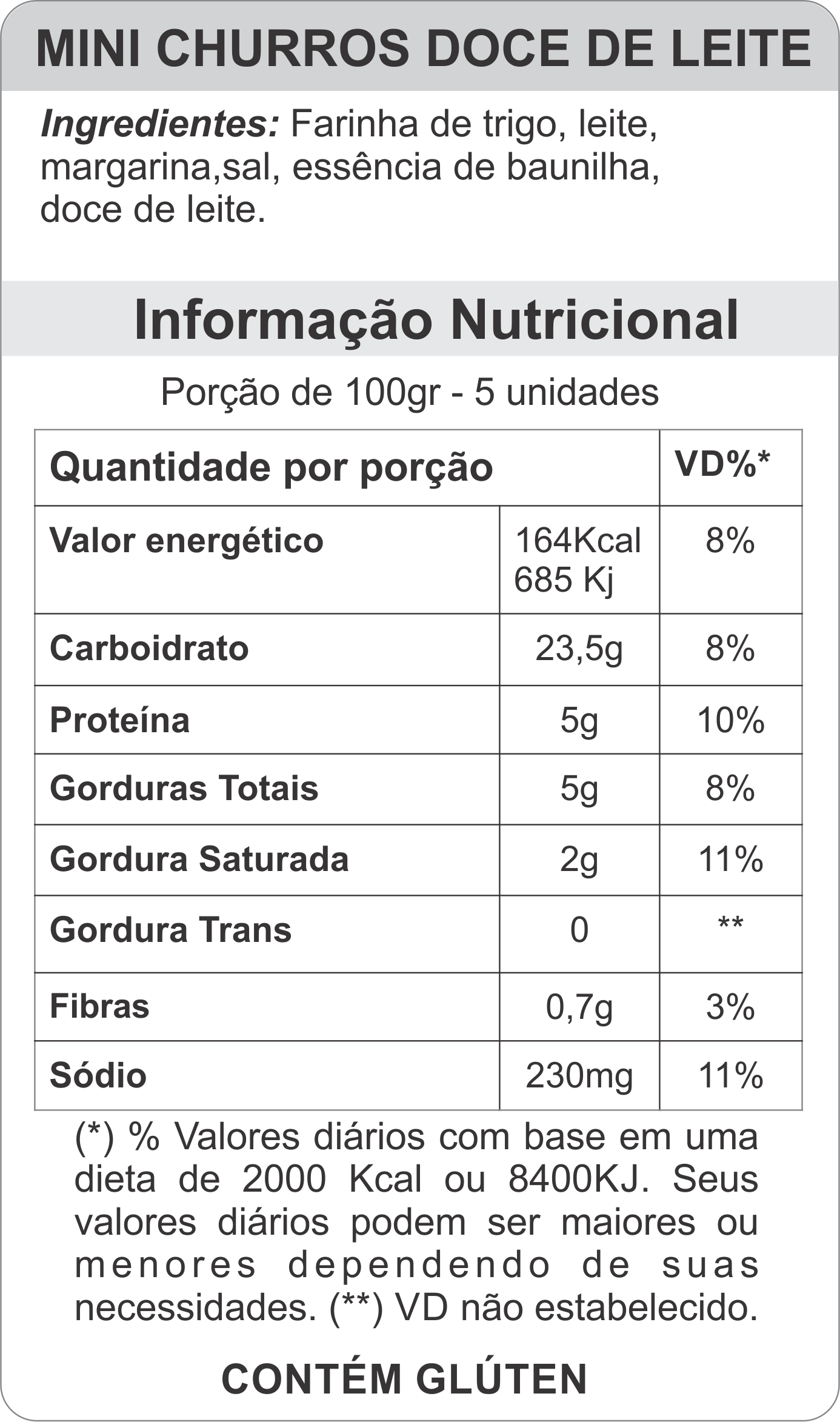 Se ainda não provou o nosso mini churros de doce de leite não sabe o que está perdendo, uma delícia de massa com o mais puro doce de leite, é uma combinação perfeita.