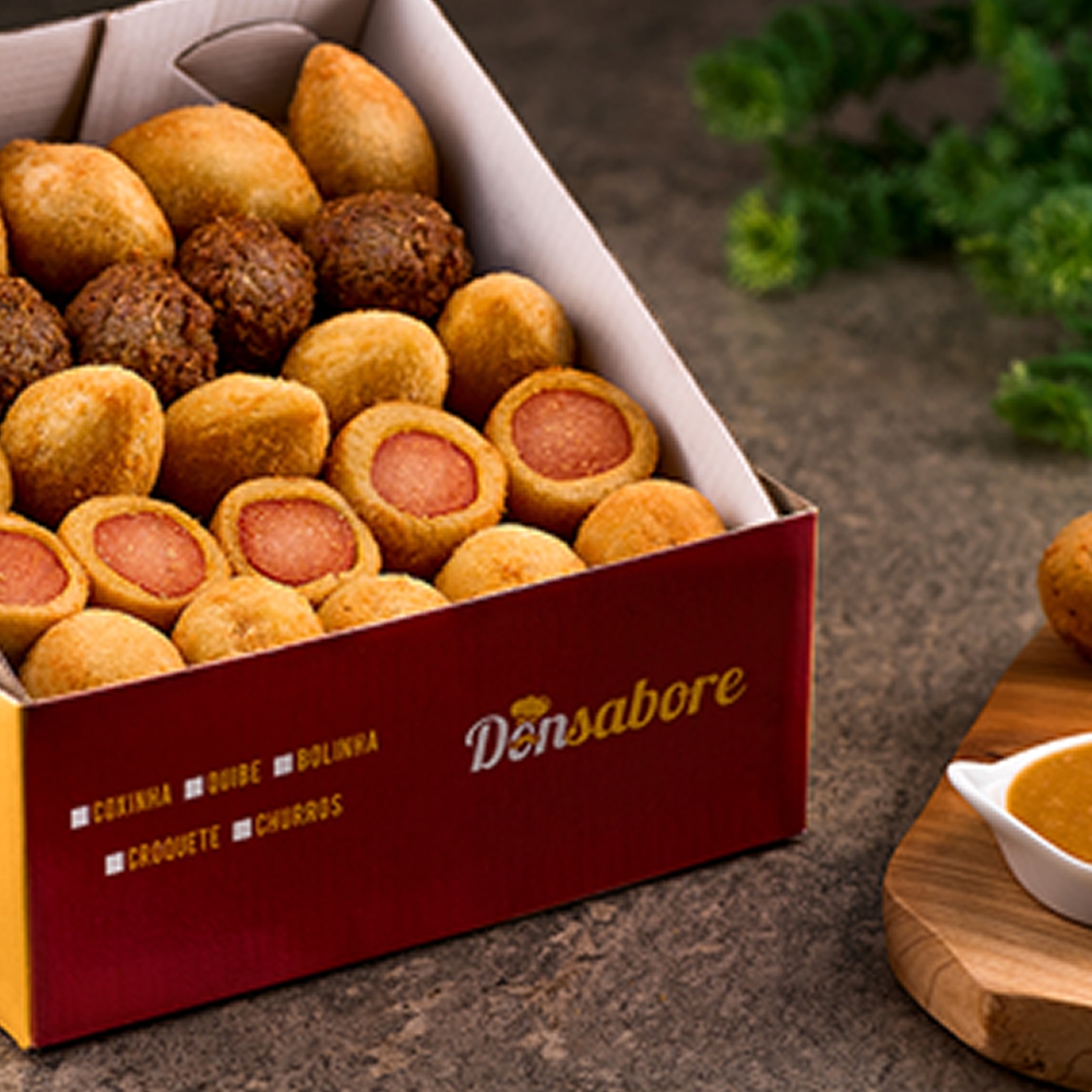 SERVE ATÉ 4 PESSOAS, TAMANHO FESTA Coxinha de Frango, Coxinha de Carne, Bolinha de Queijo, Bolinho de Calabresa, Kibe , Kibe com Requeijão, Enroladinho de Salsicha, Mini churros